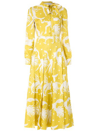 printed silk twill dress When you want to make a bold impression, wear something from Valentino. This printed silk twill dress to be exact. This yellow and white design is a guaranteed conversation starter. Featuring an abstract pattern, a tied neckline, long sleeves, a front button fastening and a mid-length. Made in Italy Composition Silk 100% SIZE & FIT Model measurements Height 5 ft 10 in(1.77 m) Bust/Chest 32.28 in(82 cm) Hips 36.61 in(93 cm) Waist 25.19 in(64 cm) Measurement BUST 34.64 in(88 cm) HIPS 35.43 in(90 cm) LENGTH 55.11 in(140 cm) Shoulder Width 14.56 in(37 cm) SLEEVE LENGTH 24.4 in(62 cm) WAIST 27.55 in(70 cm) FittingInformation This piece fits true to size. We recommend you get your regular size Cut for a loose fit Made with a lightweight non-stretch fabric