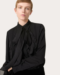 Georgette shirt - Ruffle detail - Scarf detail with bow - Georgette (100% Silk) - Length: 75 cm / 29.5 in. from the shoulders in an Italian size 40 - The model is 176 cm / 5'9" tall and wears an Italian size 40 - Made in Italy Product code: 5B0AB7061MH_0NO