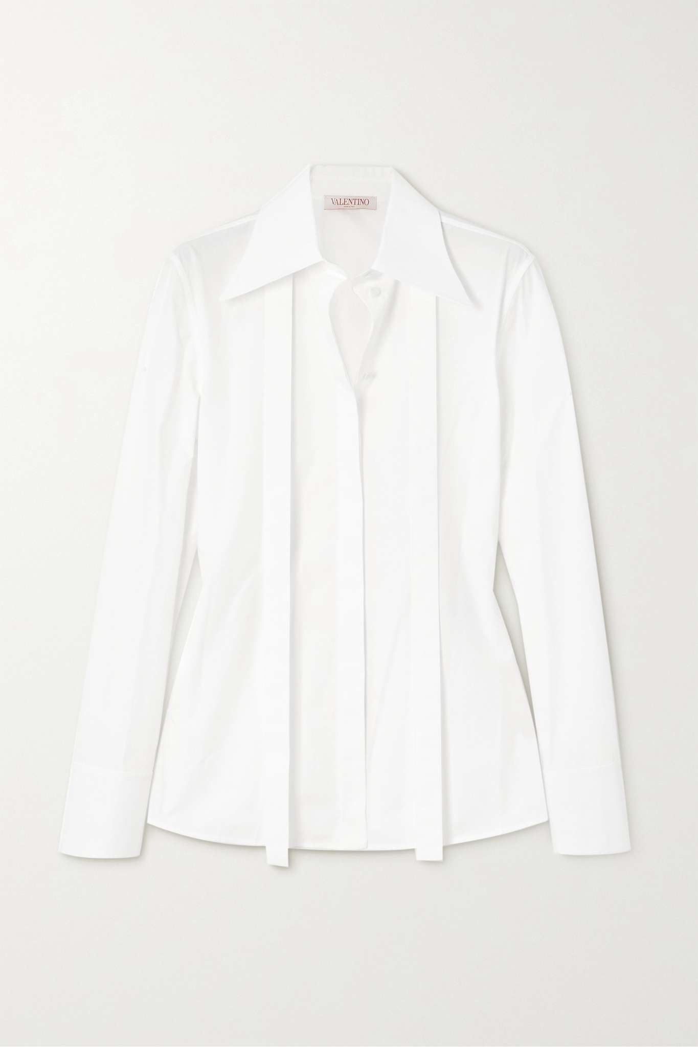 EDITORS'NOTES You're bound to reach for Valentino Garavani's shirt often. Made from crisp cotton-poplin, it has a retro pointed collar and an elegant pussy bow. Tuck it into tailoring or denim. SIZE & FIT - Fits true to size, take your normal size - Designed for a slightly loose fit - Lightweight, non-stretchy fabric - Model is 177cm/ 5'10" and is wearing an IT 40 DETAILS & CARE - White cotton-poplin - Concealed button fastenings through front - 100% cotton