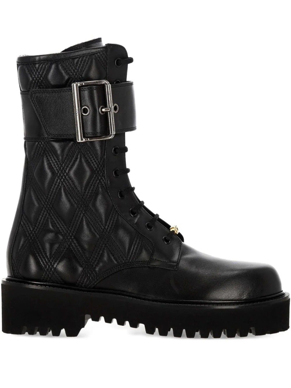 VLogo leather combat boots Highlights - Black - Quilted leather - Buckle fastening strap - Lace-up fastening - Platform sole - Gold-tone logo detail Made in Italy Composition Outer: Lambskin 100% Lining: Lambskin 100% Sole: Lambskin 100%