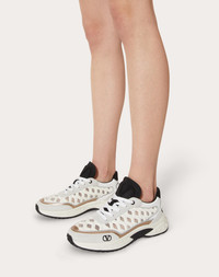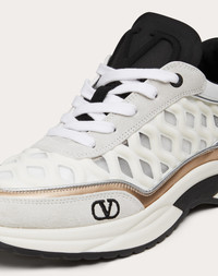 Valentino Garavani Ready Go Runner sneaker in Lycra fabric, suede leather and metallic calfskin. - Technical Lycra fabric made using high-frequency technique with wave pattern - VLogo Signature embellishment on tongue, heel and at the side - Rubber sole embellished with VLogo Signature detail - Made in Italy Product code: WS0EA5NHR_S19