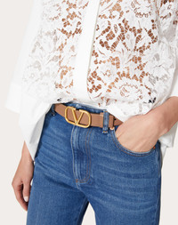 Valentino Garavani VLogo Signature reversible belt in glossy calfskin leather. - VLogo Signature buckle with antique-brass finish - Dimensions: H.30 mm / 1.2 in. - Made in Italy Product code: 3W2T0T15ZFR_LC8