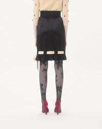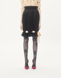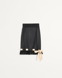 Double Satin Midi Skirt - Ruffle at the hem with bow detail - Side zipper closure - Double Satin (100% Silk) - Unlined - Length: 97 cm / 38.2 in. from the waist in an Italian size 40 - The model is 176 cm / 5'9" tall and wears an Italian size 40 - Made in Italy The look of the model is completed by a Valentino Garavani Le Chat de La Maison Bag and Valentino Garavani Hi Dolly Shoes. Product code: 7B3RADT07S9_TB1