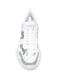 Rockrunner Plus low-top sneakers Military-style is trending this season. Case in point: these coveted white and silvery camouflage calf leather Valentino Garavani Rockrunner Plus sneakers. Lead the fashion brigade in this army-inspired pair. Highlights - Valentino ready to wear - White/grey - Calf leather - Camouflage print - Rockstud embellishment - Ridged rubber sole - Front lace-up fastening - Logo patch at the tongue - Pull tab at the heel - Ridged rubber sole Made in Italy Composition Lining: Bos Taurus 100%, Polyester 100% Outer: Calf Leather 100%, Polyamide 80%, Spandex/Elastane 20% Sole: Rubber 100% SIZE & FIT Measurement HEEL 1.77 in(4.5 cm) Sole height 0.78 in(2 cm) Washing instructions Read Manufacturer Guidelines