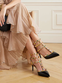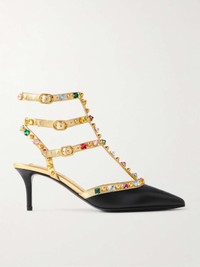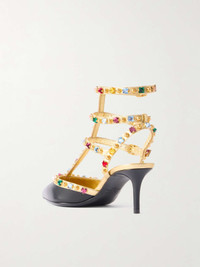 EDITORS'NOTES Pierpaolo Piccioli and Maria Grazia Chiuri debuted Valentino Garavani's 'Rockstud' pumps on the runway in 2010 and the style has never lost its appeal. This caged version has been made in Italy from a combination of black and gold leather. They're decorated with kaleidoscopic embellishments that are galvanized by hand to retain their glossy shine over time. SIZE & FIT - Fits true to size, take your normal size - Italian sizing DETAILS & CARE - Heel measures approximately 65mm/ 2.5 inches - Gold and black leather - Buckle-fastening ankle straps