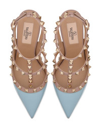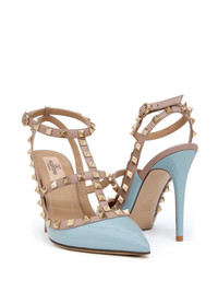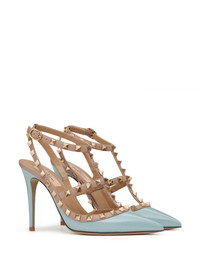 Rockstud leather pumps Highlights - Light blue - Calf leather - Goatskin - Lambskin - Gold-tone rockstud detailing - Pointed toe - Buckle-fastening ankle strap - Branded insole - High heel Made in Italy Composition Outer: Lambskin 100%, Calf Leather 100% Lining: Goat Skin 100% Sole: Calf Leather 100% SIZE & FIT Measurement HEEL 3.93 in(10 cm)