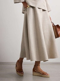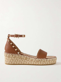 EDITORS'NOTES Espadrilles are a warm-weather staple for good reason - they'll go with everything from shorts to floaty dresses. Valentino Garavani's sandals have been made in Italy from light-brown textured-leather and traced with the brand's signature 'Rockstuds'. The pyramid embellishments are inspired by the nailheads on Roman palazzo doors and individually galvanized to ensure they stay shiny. SIZE & FIT - Fits true to size, take your normal size - Italian sizing DETAILS & CARE - Heel measures approximately 55mm/ 2 inches - Light-brown textured-leather (Calf) - Buckle-fastening ankle strap