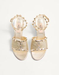 ROCKSTUD SANDAL IN LAMINATED NAPPA WITH CORNELY EMBROIDERY 60MM