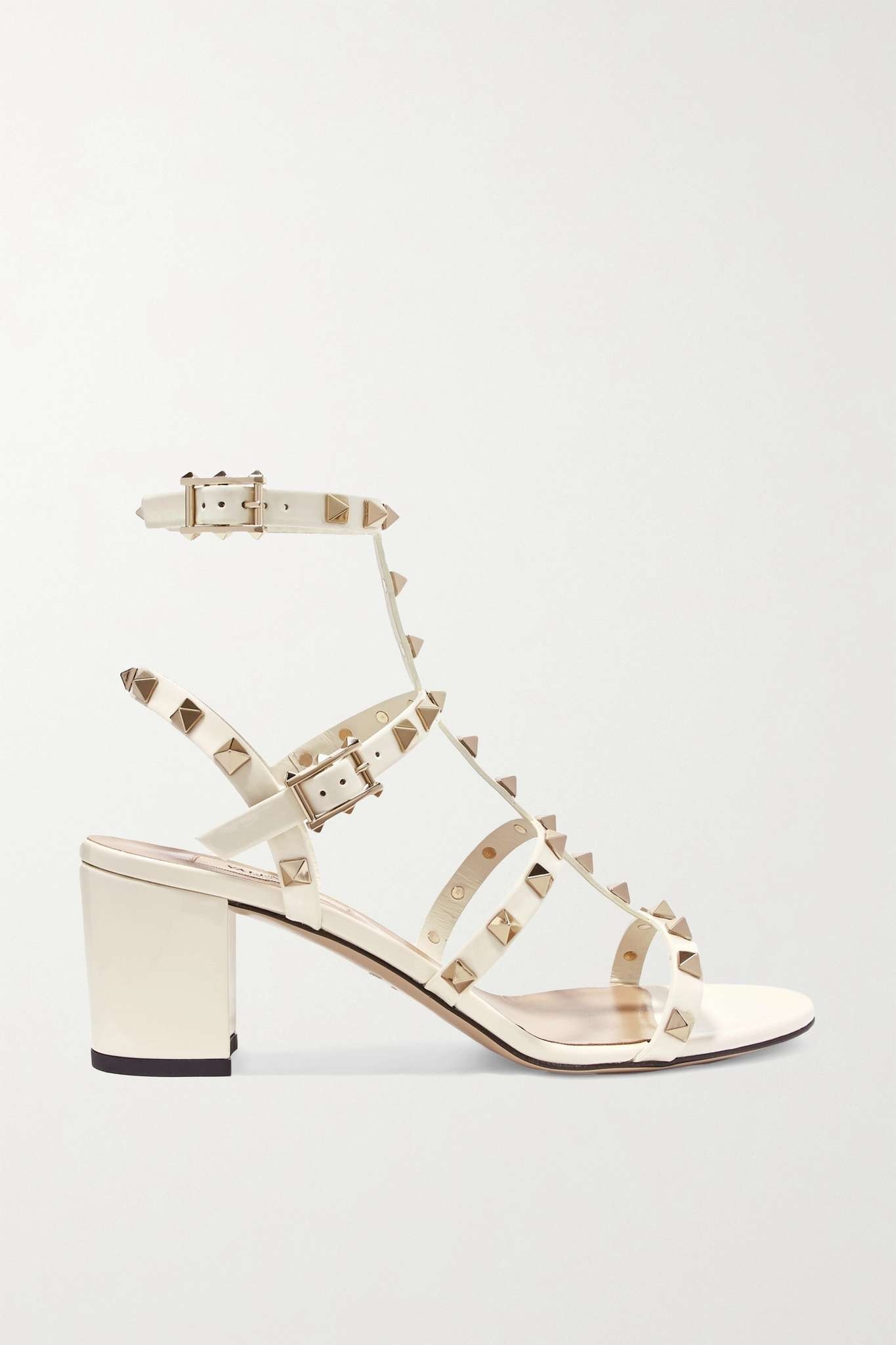 EDITORS'NOTES Valentino Garavani created its now-iconic 'Rockstud' shoes to offset the romantic nature of its runway gowns, so be sure to style yours in the same spirit. These ivory patent-leather sandals are embellished with the brand's signature gold pyramid embellishments and have a comfy block heel that'll prevent them from sinking into the grass at outdoor weddings and events.<br><br>Shown here with: [Chloé Dress id1153163], [Loewe Pouch id1152085], [Chloé Bracelet id1063018], [Alighieri Bracelet id1137076], [Ellery Earrings id1070308], [Sophie Buhai Bangle id1121514], [Laura Lombardi Ring id1129364]. SIZE & FIT - Fits true to size, take your normal size - Those with wide feet may wish to take the next half size up - Italian sizing DETAILS & CARE - Heel measures approximately 60mm/ 2.5 inches - Ivory patent-leather (Calf) - Buckle-fastening ankle straps - Made in Italy