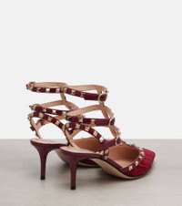 Valentino Garavani looked to ancient architecture to create the now-iconic Rockstud embellishments. Featuring the signature detailing, these pumps are made from velvet and leather and are complete with 65mm heels. Product Details - Upper: fabric, leather - Lining: leather - Sole: leather insole and sole - Toe shape: pointed toe - Made in Italy - Includes: shoe box, dust bags - Designer color name: Burgundy/Insolent - Item color: burgundy - Closure: ankle strap - Hardware color: gold - Item number: P01062326 Size & Fit - True to size - European sizes - 6,5cm-2.5" heel (size EU 38)