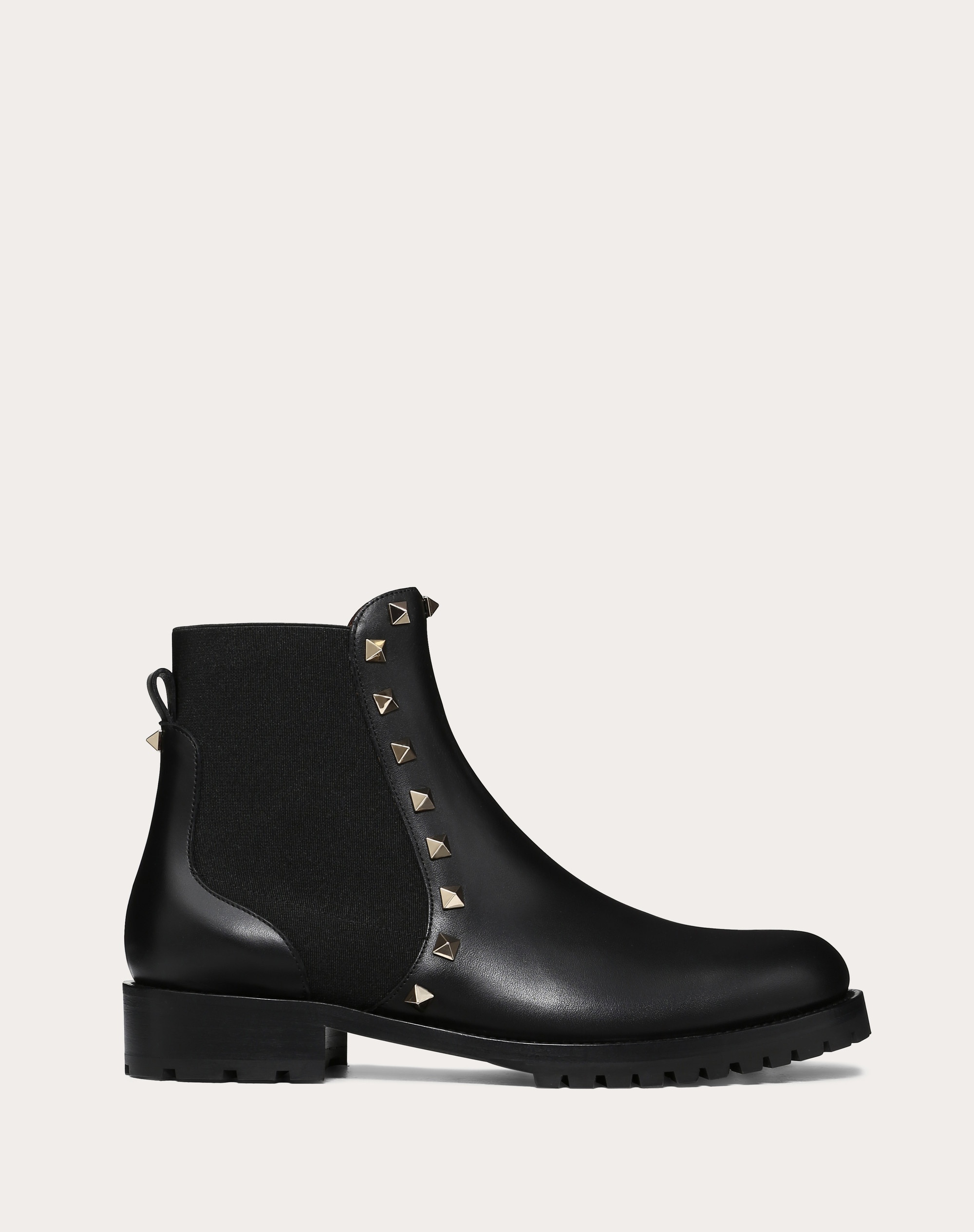 Valentino Garavani Rockstud beatle boot in calfskin leather. - Platinum-finish studs - Tone-on-tone elastic bands on the side - Rubber lug sole - Heel height: 20 mm / 0.8 in. - Made in Italy Product code: SW2S0D47VOT_0NO Valentino Garavani Rockstud beatle boot in calfskin leather. - Platinum-finish studs - Tone-on-tone elastic bands on the side - Rubber lug sole - Heel height: 20 mm / 0.8 in. - Made in Italy Product code: SW2S0D47VOT_0NO