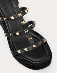 ROCKSTUD ANKLE STRAP WEDGE SANDAL IN CALFSKIN LEATHER 95 MM
