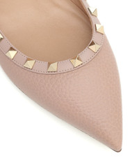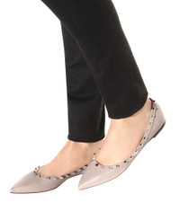Invest in an icon: Valentino Garavani's Rockstud ballet flats are a style that will stay in your wardrobe for years to come. Timeless in grainy beige leather with a tonal trim, they're topped off with the brand's signature pale gold-tone pyramid studs for a luxe final note. Take them from the office to evenings out. Product Details - Lining: leather - Sole: leather insole and sole - Upper: calf leather - Trim: platinum-plated studs - Toe shape: pointed toe - Designer color name: Poudre - Comes with a box - Made in Italy - Comes with dust bag - Item number: P00210479 Size & Fit - Fits slightly large to size - we recommend trying a half size smaller - European sizes