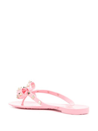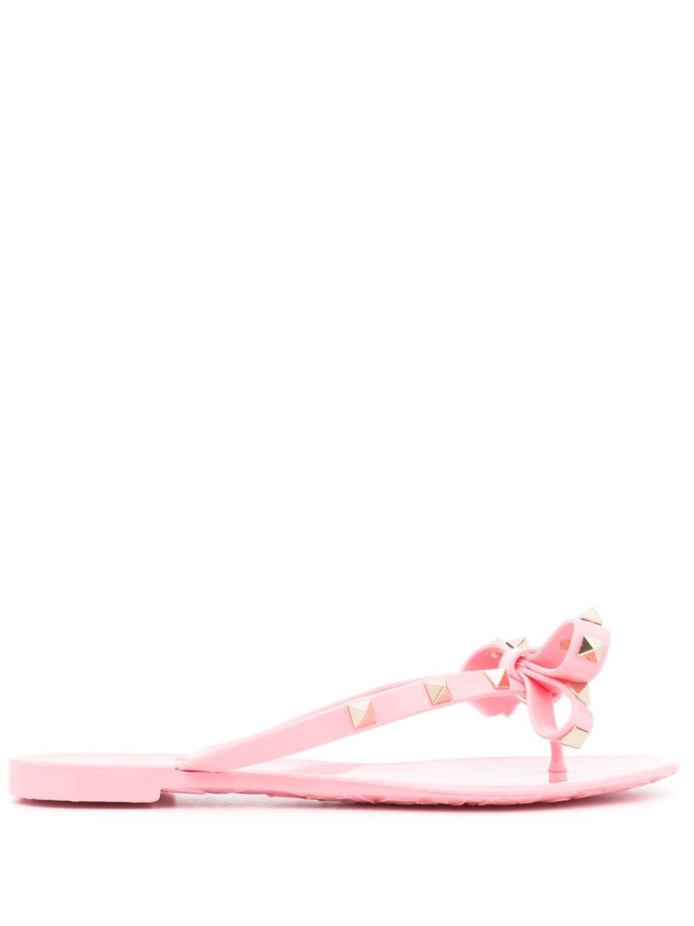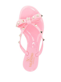 Rockstud bow-embellished flip-flops The pale gold-tone Rockstuds on these rubber flip flops are inspired by the bugnato exteriors found on Romeâs palazzos and hand polished to maintain their shine. They add punkish contrast to the pink hue and bow embellishment. Highlights - Flamingo pink - Rubber - Low heel - Gold-tone rockstud detailing - Bow detailing - Thong strap - Round open toe - Branded insole - Flat sole Composition Lining: Rubber 100% Sole: Rubber 100% Outer: Rubber 100% SIZE & FIT Measurement HEEL 0.39 in(1 cm)