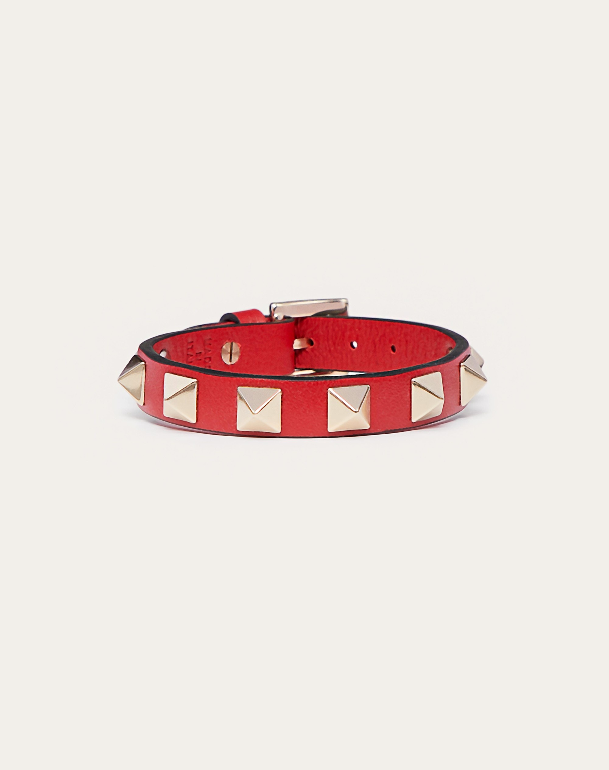 Valentino Garavani Rockstud bracelet in calfskin. - Platinum-finish studs - Adjustable strap - Length: 18 cm / 7 in. from the tip of the buckle pin to the middle of the 4 holes - Made in Italy Product code: 1W2J0255VIT_JU5