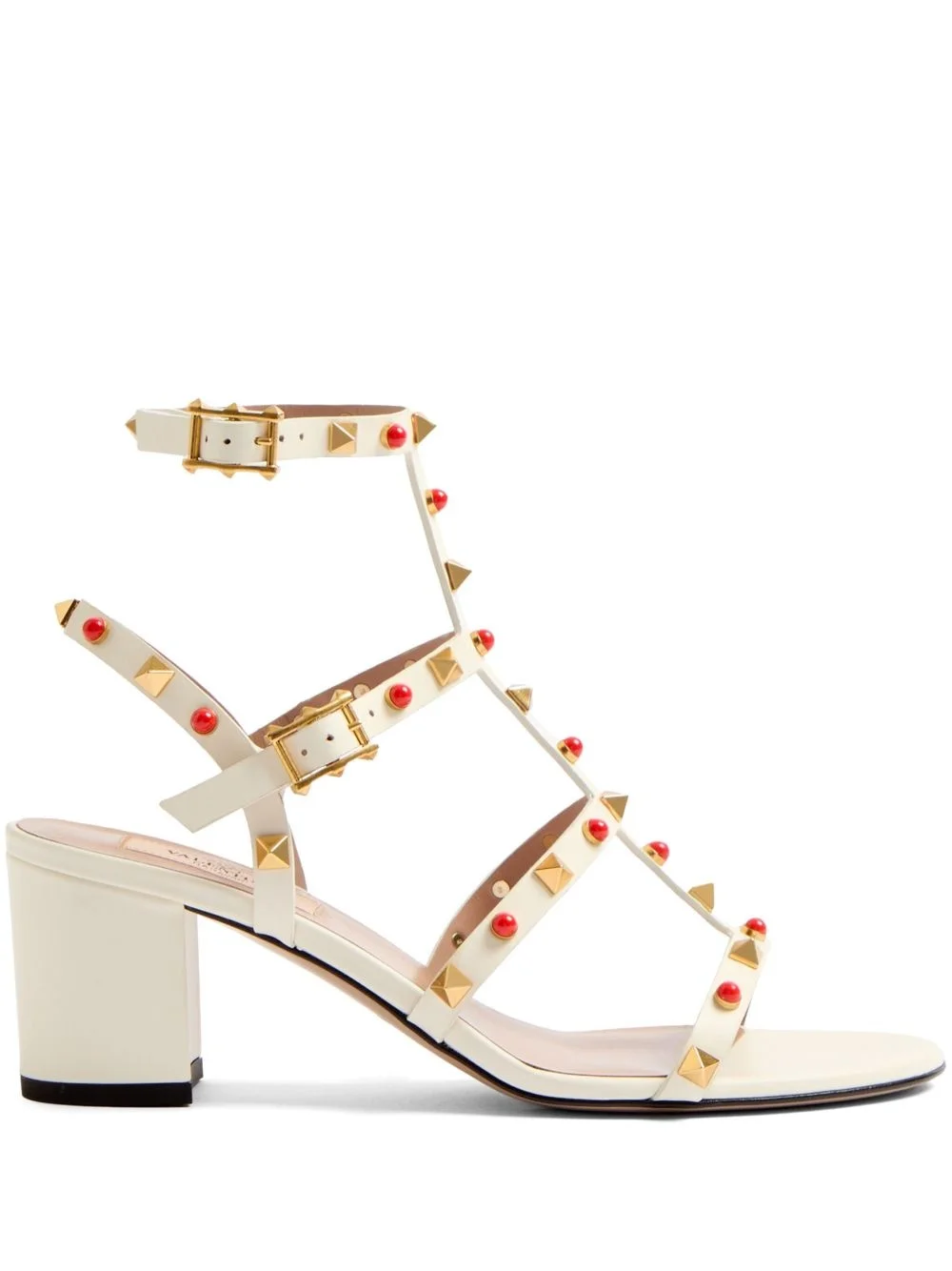 Rockstud sandals Highlights - Light beige - Mid block heel - Buckle-fastening ankle strap - Signature rockstud detailing - Open toe Made in Italy Composition Lining: Calf Leather 100% Sole: Calf Leather 100% Outer: Calf Leather 100%