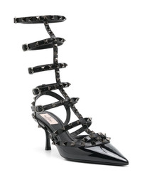 70mm Rockstud pumps Highlights - Black tie collection - Black - Calf leather - Patent finish - Signature rockstud detailing - Caged design - Buckle fastening - Pointed toe - Branded leather insole - Mid sculpted heel Made in Italy Composition Outer: Calf Leather 100%, Metal 100% Lining: Lambskin 100%, Goat Skin 100% Sole: Calf Leather 100% Washing instructions Read Manufacturer Guidelines