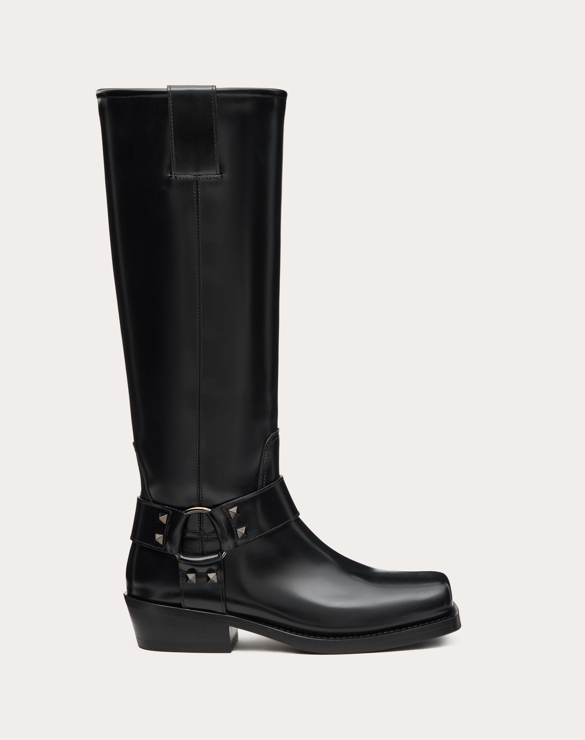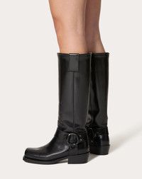 Valentino Garavani Rockstud Biker Boot in calfskin - Strap with accessory and tone-on-tone studs - Heel height: 40 mm / 1.6 in. - Shaft height: 39 cm / 15.4 in.; Italian size 37 - Made in Italy Product code: 5W0S0KV3NIB_0NO