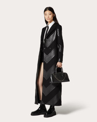 Valentino Garavani Rockstud handbag in calfskin. Base entirely covered with studs and convenient chain element featuring iconic stud decoration. The bag can be handheld or worn over the shoulder or crossbody thanks to the handles and extendable shoulder strap. - Ruthenium-finish studs and hardware - Zipper closure - Leather lining. Interior: slip pocket - Chain shoulder strap with central hook fastening and additional leather section. Shoulder strap drop length: 50 cm / 19.7 in. - Dimensions: W34xH15xD9 cm / W13.4xH4.3xD3.1 in. - Made in Italy Product code: 3W0B0M72XRZ_0NO Valentino Garavani Rockstud handbag in calfskin. Base entirely covered with studs and convenient chain element featuring iconic stud decoration. The bag can be handheld or worn over the shoulder or crossbody thanks to the handles and extendable shoulder strap. - Ruthenium-finish studs and hardware - Zipper closure - Leather lining. Interior: slip pocket - Chain shoulder strap with central hook fastening and additional leather section. Shoulder strap drop length: 50 cm / 19.7 in. - Dimensions: W34xH15xD9 cm / W13.4xH4.3xD3.1 in. - Made in Italy Product code: 3W0B0M72XRZ_0NO