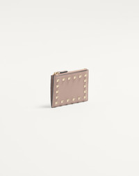 ROCKSTUD GRAINY CALFSKIN CARDHOLDER WITH ZIPPER