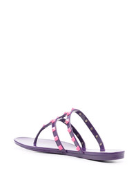Rockstud flat sandals Valentino Garavani updates timeless silhouettes with seasonal colourways that seamlessly encapsulate the spirit of spring/summer. In a violet and bright pink iteration, these flat sandals are embellished with the house's signature Rockstuds and boast a caged-like striped design for a secure fit. Made in Italy Composition Outer: Rubber 100% Lining: Rubber 100% Sole: Rubber 100% SIZE & FIT Measurement HEEL 0.59 in(1.5 cm) Sole height 0.39 in(1 cm)