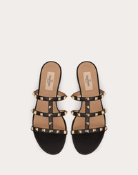 Valentino Garavani Rockstud flat sandal in calfskin leather. - Platinum-finish studs - Heel height 5 mm/0.25'' - Made in Italy Product code: 5W2S0C49VOD_0NO