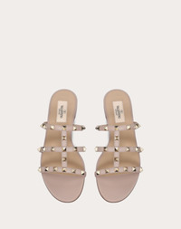 Valentino Garavani Rockstud flat sandal in calfskin leather. - Platinum-finish studs - Heel height 5 mm/0.25'' - Made in Italy Product code: 5W2S0C49VOD_P45