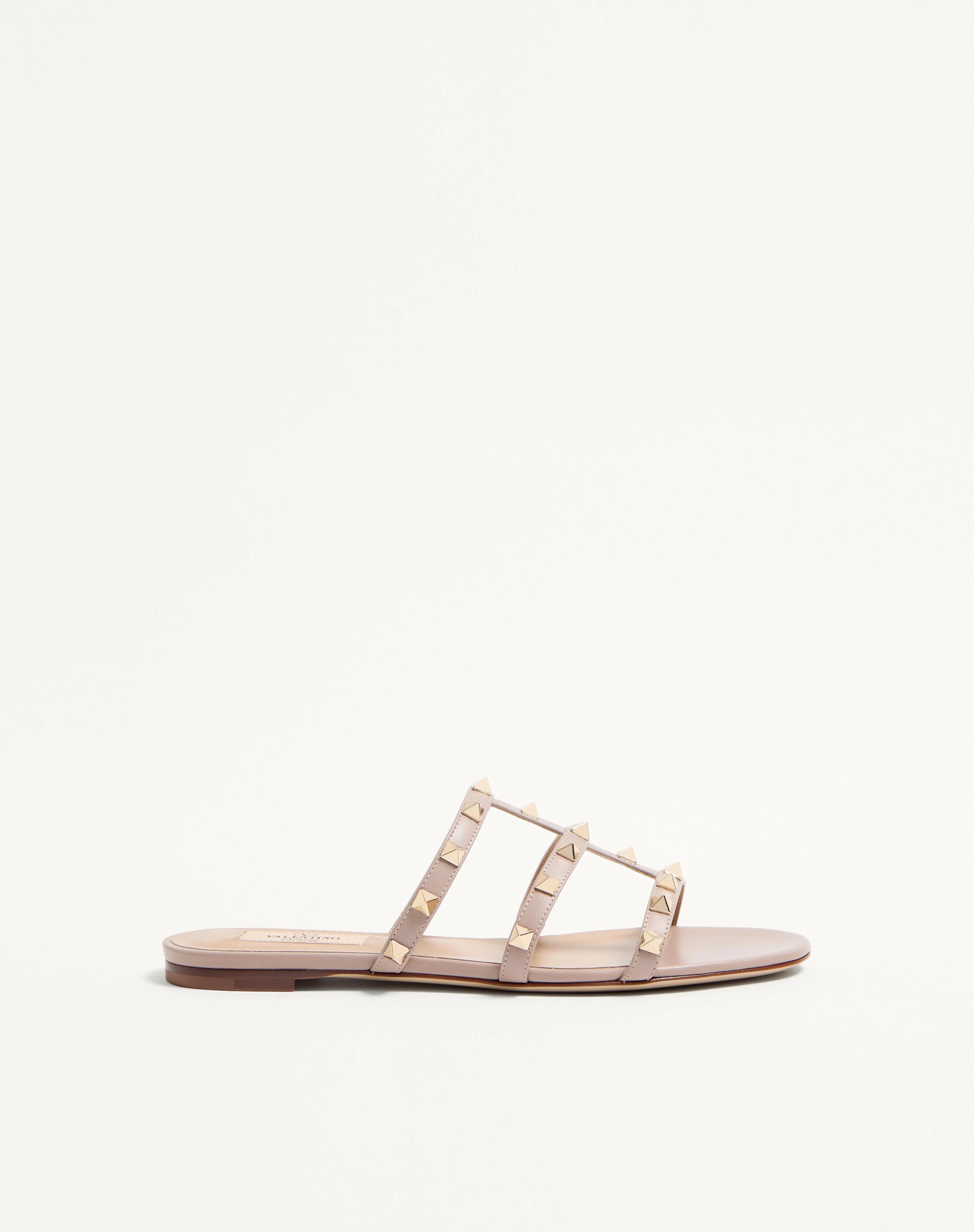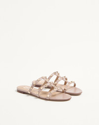 Valentino Garavani Rockstud flat sandal in calfskin leather. - Platinum-finish studs - Heel height 5 mm/0.25'' - Made in Italy Product code: 7W2S0C49VOD_P45