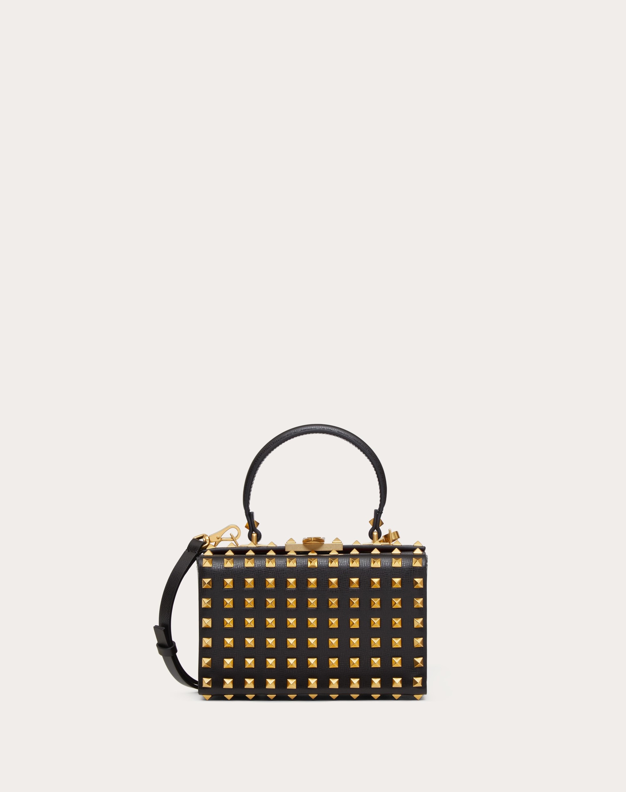 ROCKSTUD GRAINY CALFSKIN BOX BAG WITH ALL-OVER STUDS