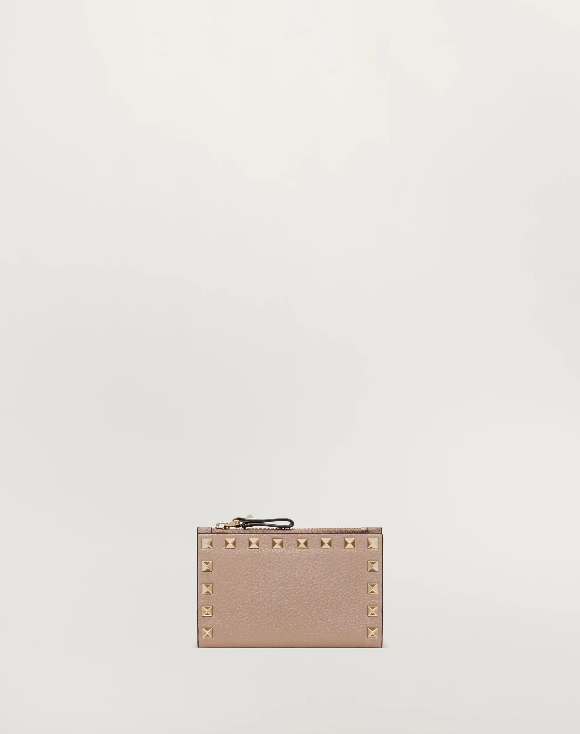 ROCKSTUD GRAINY CALFSKIN CARDHOLDER WITH ZIPPER