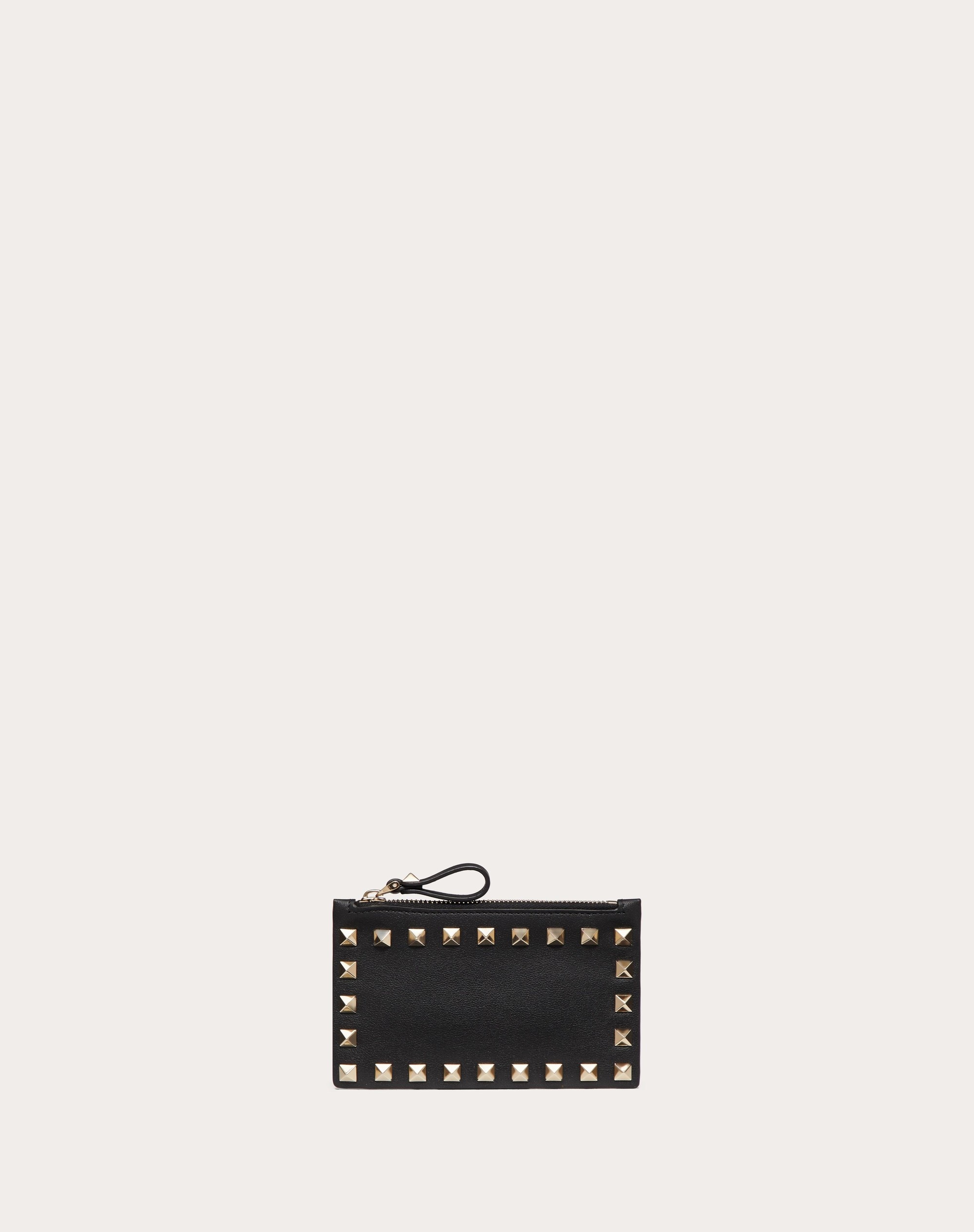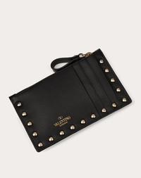 ROCKSTUD CALFSKIN CARDHOLDER WITH ZIPPER