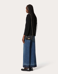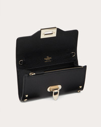 ROCKSTUD GRAINY CALFSKIN WALLET WITH CHAIN STRAP
