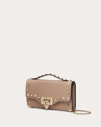 ROCKSTUD GRAINY CALFSKIN WALLET WITH CHAIN STRAP
