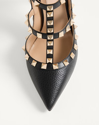 ROCKSTUD GRAINY LEATHER ANKLE STRAP PUMP 100 MM