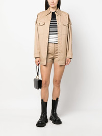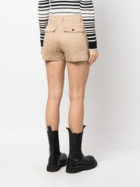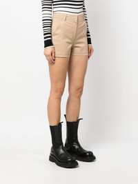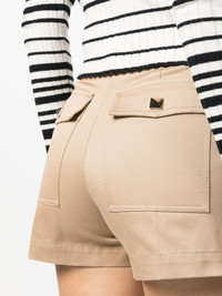 Rockstud high-waisted shorts Subtly adorned with iconic Rockstud detailing at the back, these Valentino Garavani shorts are crafted from comfortable stretch-cotton in a neutral beige hue, boasting an utilitarian inspiration. Highlights - Valentino ready to wear - Beige - Stretch-cotton - Signature rockstud detailing - High-waisted - Belt loops - Concealed front fastening - Two rear flap pockets - Thigh-length - The full look includes valentino garavani accessories. Made in Italy Composition Outer: Cotton 98%, Elastane 2% Lining: Cupro 100% SIZE & FIT Model measurements Height 5 ft 11 in(1.8 m) Bust/Chest 33.07 in(84 cm) Hips 37.4 in(95 cm) Waist 25.19 in(64 cm) FittingInformation Designed for a slim fit that sits just away from the body offering a close yet comfortable fit Made from a midweight stretch fabric, this piece offers elasticity and flexibility when worn This piece fits true to size – take your usual size