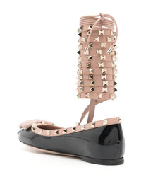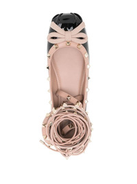 Rockstud lace-up leather ballerinas Highlights - Black/blush beige - Calf leather - Patent finish - Gold-tone rockstud detailing - Bow detailing - Lace-up detailing - Self-tie fastening - Round toe - Branded leather insole - Flat leather sole Made in Italy Composition Body: Calf Leather 80%