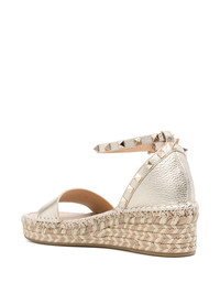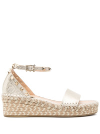 Rockstud-embellished espadrilles Highlights - Gold-tone - Calf leather - Pebbled texture - Signature rockstud embellishment - Buckle-fastening ankle strap - Single toe strap - Round open toe - Whipstitch trim - Branded footbed - Leather lining - Braided raffia sole - Rubber outsole Made in Italy Composition Lining: Calf Leather 100% Outer: Calf Leather 100% Sole: Rubber 100% SIZE & FIT Measurement HEEL 2.36 in(6 cm) Sole height 1.18 in(3 cm)