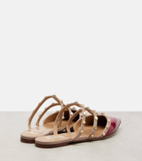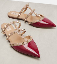 Expertly crafted in Italy from patent leather, the Rockstud mules from Valentino Garavani are adorned with signature gold-toned studs. With a pointed toe, this pair effortlessly blends edgy appeal with elevated elegance for both day and night. Product Details - Upper: leather - Lining: leather - Sole: leather insole and sole - Toe shape: pointed toe - Made in Italy - Includes: dust bag, shoe box - Designer color name: Insolent/Poudre - Item color: burgundy - Hardware color: gold - Item number: P01062330 Size & Fit - True to size - European sizes - 1,5cm-0.5" heel (size EU 38)