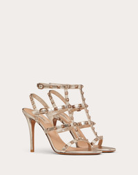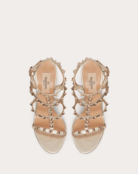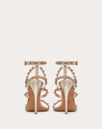 ROCKSTUD METALLIC CALFSKIN LEATHER ANKLE STRAP SANDAL 100 MM