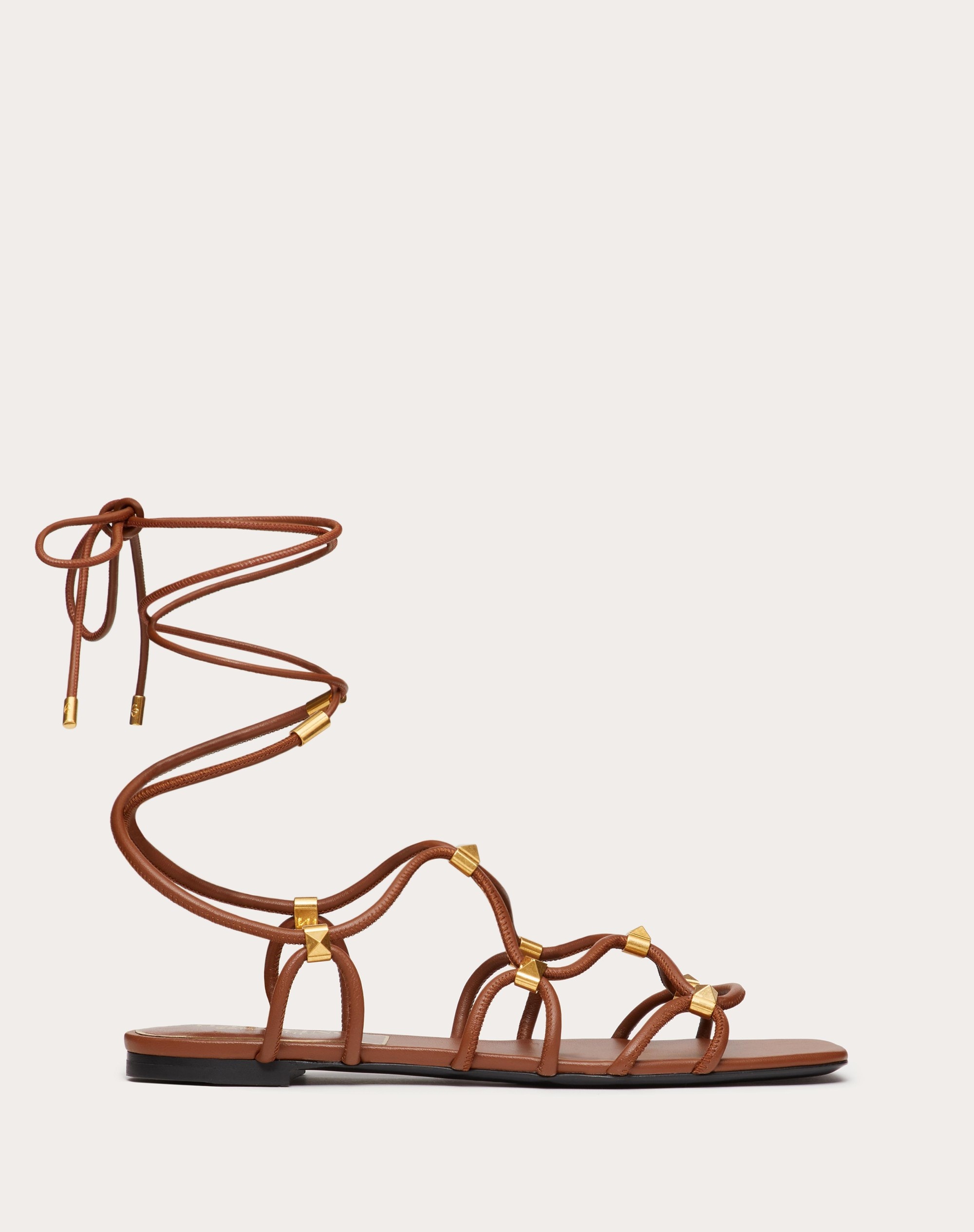 Valentino Garavani Rockstud Net kidskin sandal - Caged upper detailed with antique brass-effect studs - Ankle lacing - Heel height: 5 mm / 0.25 in. - Made in Italy Product code: WS0GG6XLX_L94