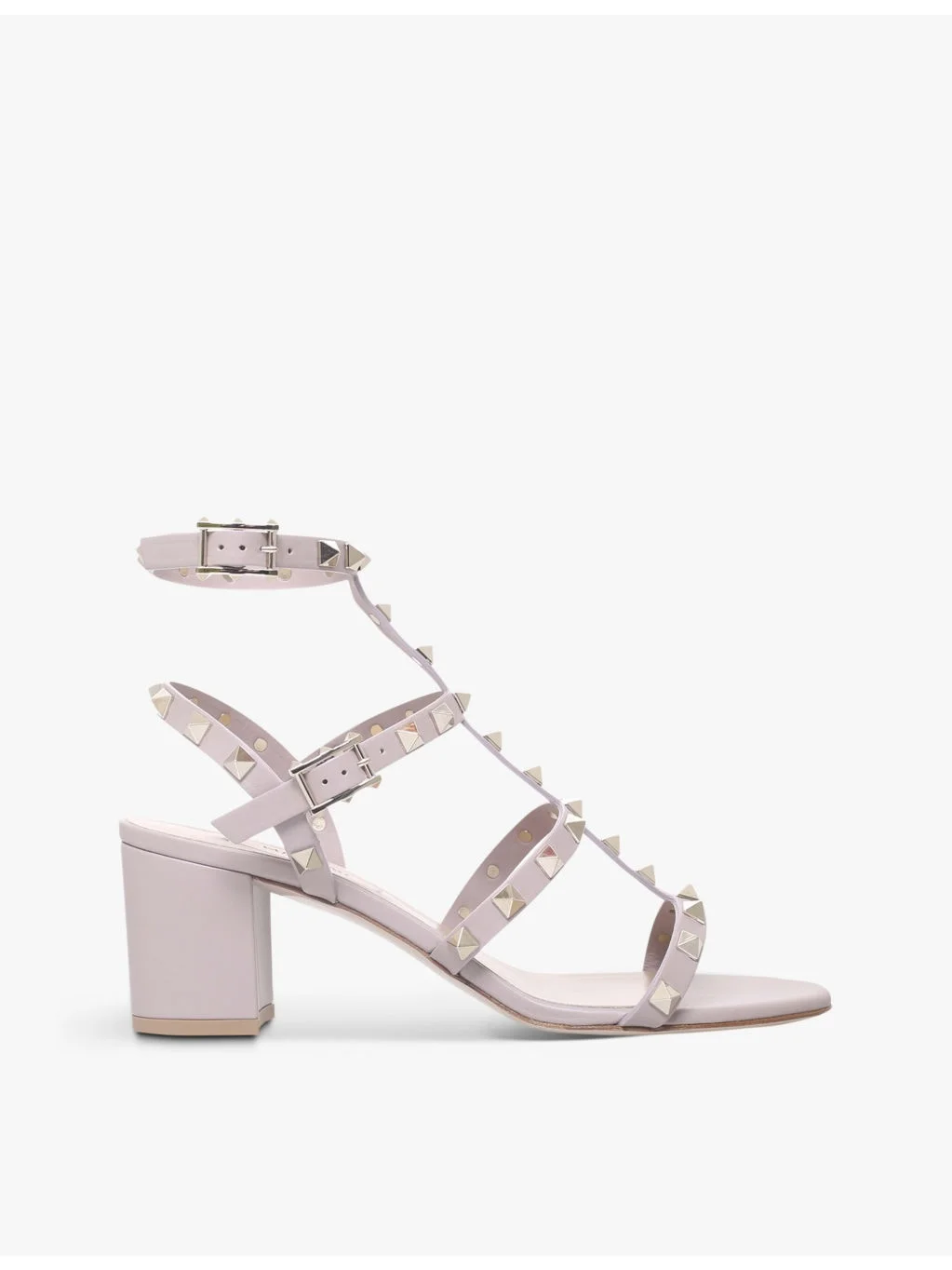 PRODUCT DETAILS - Valentino leather heeled sandals - 100% leather - Buckle fastening - Rockstud embellishment, open toe, block heel - Heel height 2.3"" - Specialist leather clean - Made in Italy - Upper: 100% leather - Lining: 100% leather - Sole: 100% leather Ref: R03925782