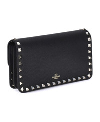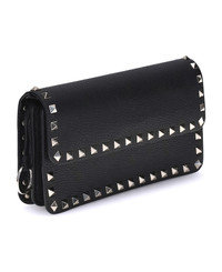 The valentino garavani rockstud pochette combines the maison's iconic character with contemporary elegance. crafted with platinum-effect metal finishes, it is embellished with the emblematic studs that define its bold style. the flap with magnetic closure hides a front pocket, while the interior is organized into two compartments divided by a zip pocket and equipped with three card slots. the chain allows it to also be worn on the shoulder, for a versatile and sophisticated look. Composition: 100% % Calf Leather Bos Taurus Made in: Italy Size and fit: - W 21.5 x H 11.5 x D 4.5 cm Model number: 7W2P0S61VSH0NO