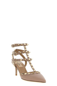 cod. W2S0375VCEP45 'Rockstud' pumps in elk print calf leather, adjustable straps and contrasting profiles in smooth calf leather with metal stud applique, pointed toe, heel, leather sole. Color: Pink Size & Fit: EU WOMAN - Heels: 6,5 cm Composition: 100% calfskin leather (Bos Taurus) Made in: Italy