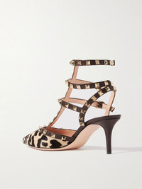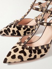 Pierpaolo Piccioli and Maria Grazia Chiuri debuted Valentino Garavani's 'Rockstud' pumps on the runway in 2010 and the style has never lost its appeal. This caged version has been made in Italy from leopard-print calf hair. They're decorated with pale-gold embellishments that are galvanized by hand to retain their glossy shine over time. Size & Fit - Fits true to size, take your normal size - Italian sizing Details & Care - Heel measures approximately 65mm/ 2.5 inches - Leopard-print calf hair, brown leather - Buckle-fastening ankle straps