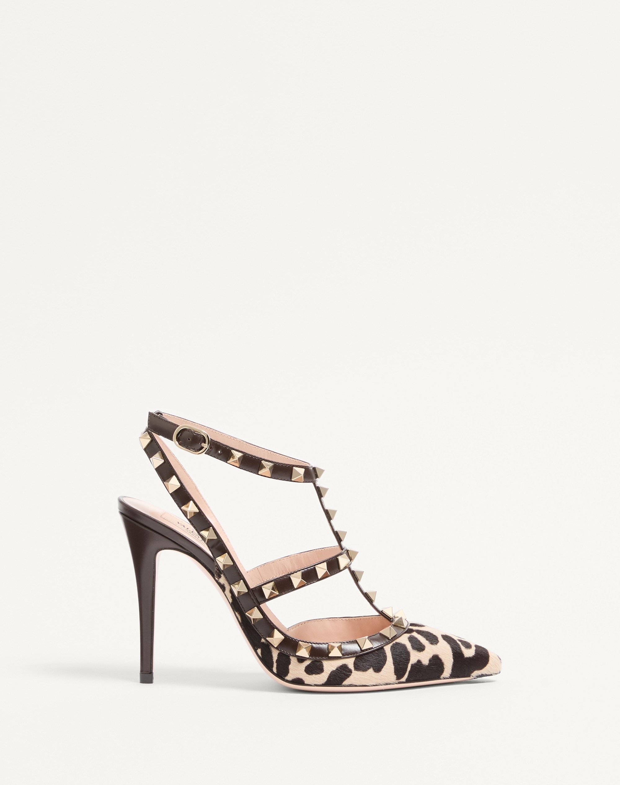 Valentino Garavani Rockstud pump with straps in pony-effect calfskin with animalier print - Platinum-finish studs - Leather straps and trims - Adjustable straps - Heel height: 100 mm / 4 in. - Made in Italy Product code: 7W2S0393AMX_BNB
