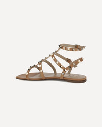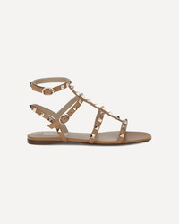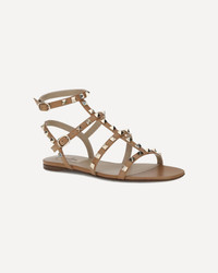 Valentino Garavani's leather Rockstud Sandals combine bold style with refined comfort. Featuring a round toe and an adjustable ankle lap strap closure with a side buckle, they offer a secure and personalized fit. The flat sole ensures practicality, while the brand's iconic all-over applied studs enrich the design with a distinctive rock touch. The branded insole completes the model with an exclusive detail. DETAILS - Sku: 7W2S0A05VOD_KEL - Season: AW25 - Composition: GENERAL 100% Calf Leather Bos Taurus - MADE IN ITALY