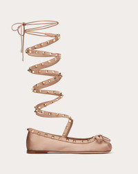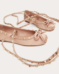 Valentino Garavani Rockstud satin ballerina - Platinum-finish studs - Fabric bow detail - Nappa leather straps and trim - Fastens at the ankle - Heel height: 5 mm / 0.2 in. - Made in Italy Product code: WS0HQ2SWH_GF9