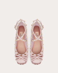 Valentino Garavani Rockstud satin ballerina - Platinum-finish studs - Fabric bow detail - Nappa leather straps and trim - Adjustable ankle strap - Heel height 5 mm / 0.25 in. - Made in Italy Product code: 5W2S0HB6SWH_6E0