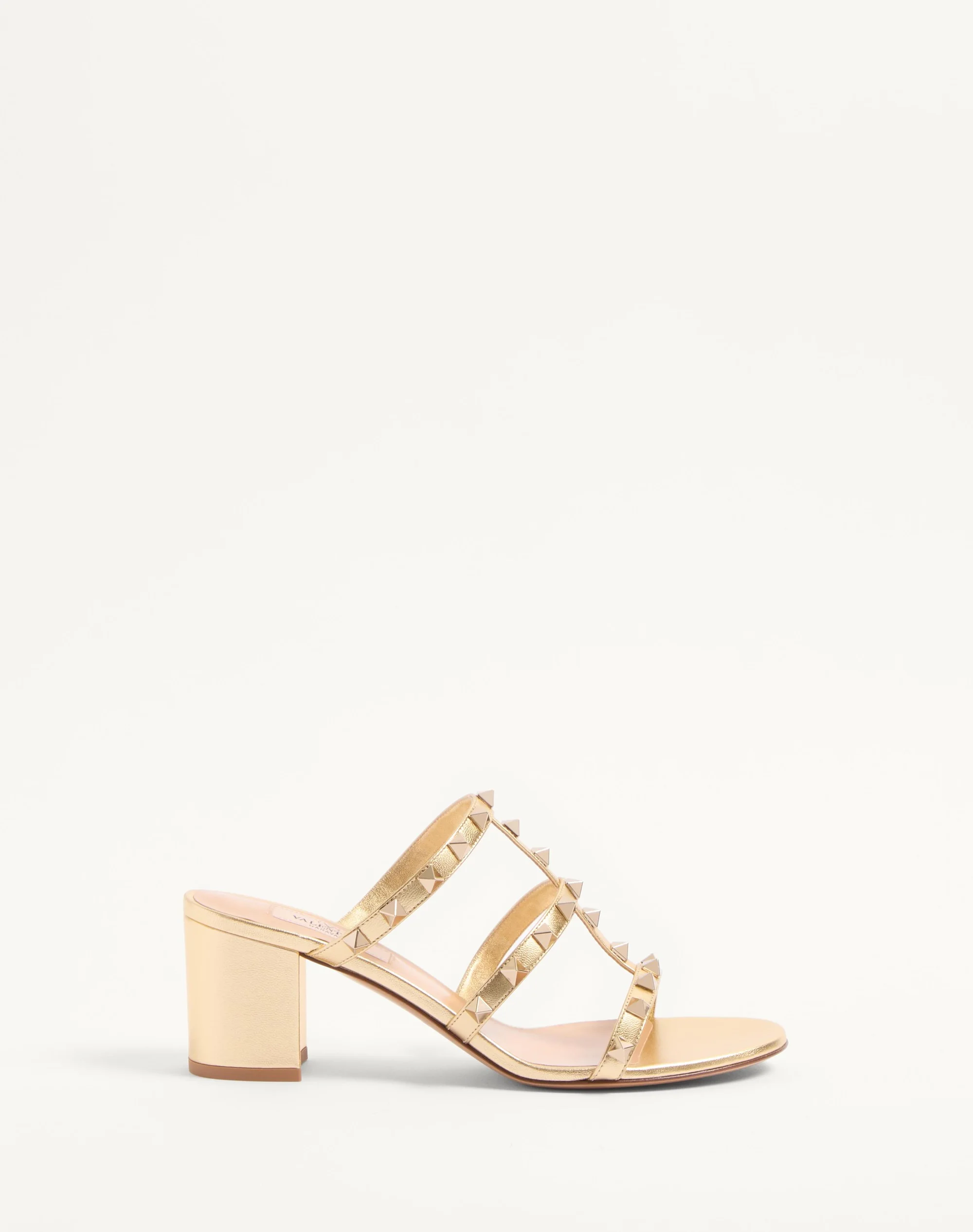 ROCKSTUD SLIDE SANDAL IN LAMINATED NAPPA 60MM