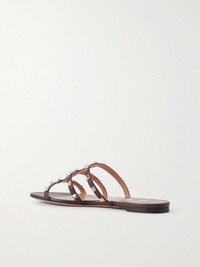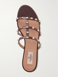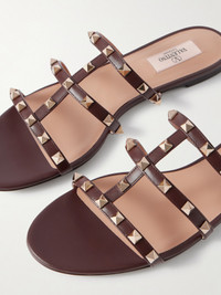 Valentino Garavani's slip-on sandals are decorated with the label's iconic 'Rockstuds', which are pale-gold and shaped like pyramids. This pair has been made in Italy from smooth black leather and designed with three straps. The open toe calls for a perfect pedicure.